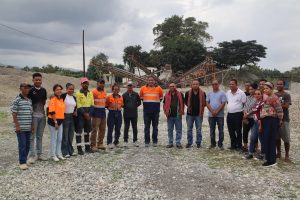 H.E Minister of Public Works, Samuel Marçal, accompanied by H.E Deputy Minister of Parliamentary Affairs, Aderito Hugo da Costa and President of BEE-TL, Gustavo da Cruz, on Saturday (02/08/2025), photo with IGEADI employees at Stone Crusher compound, Equipment Development Support Institute and Institute Infrastructure, Public Institute (IGEADI.IP), in Natabora Administrative Post, Manatuto Municipality. Saturday (02/08/2025).